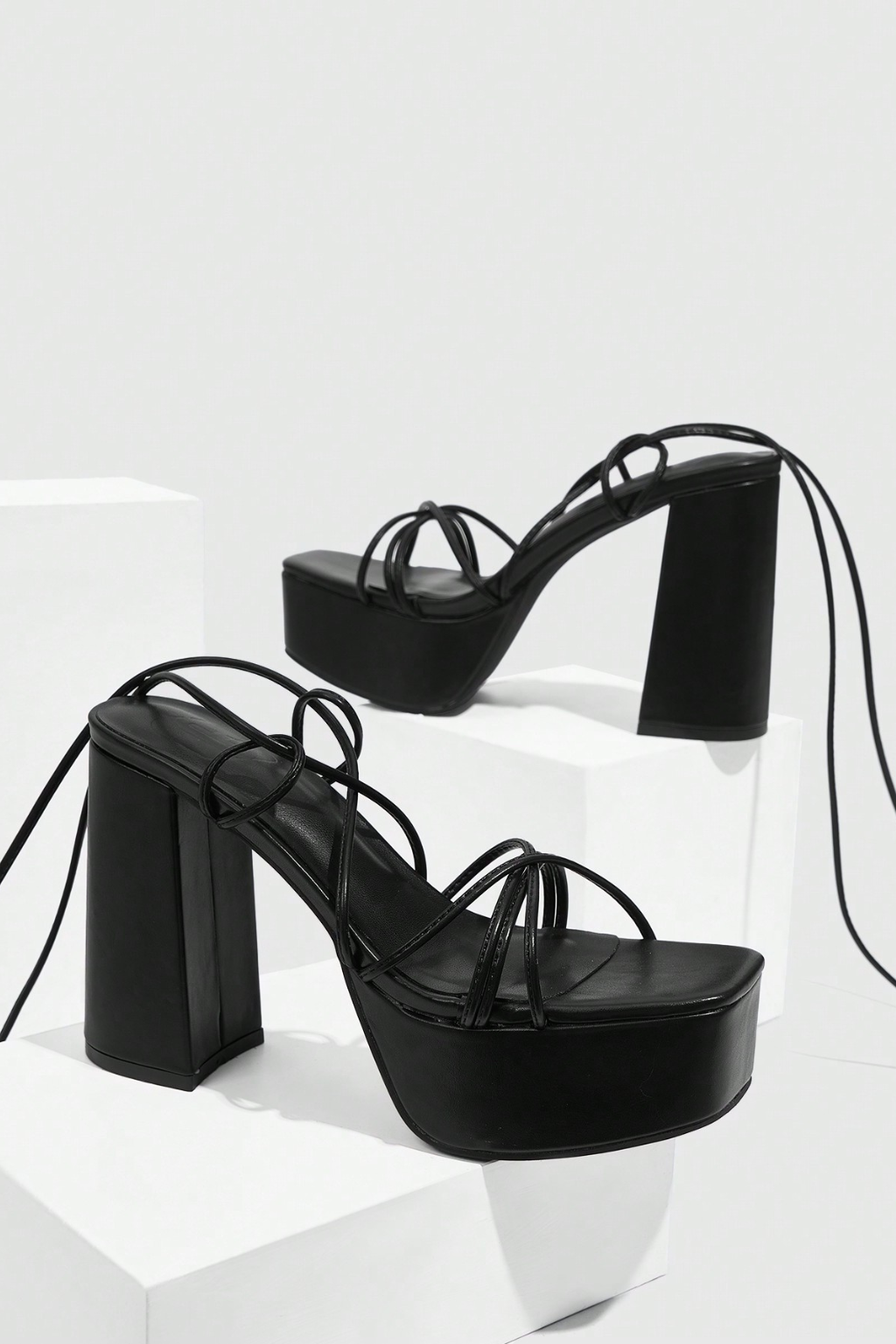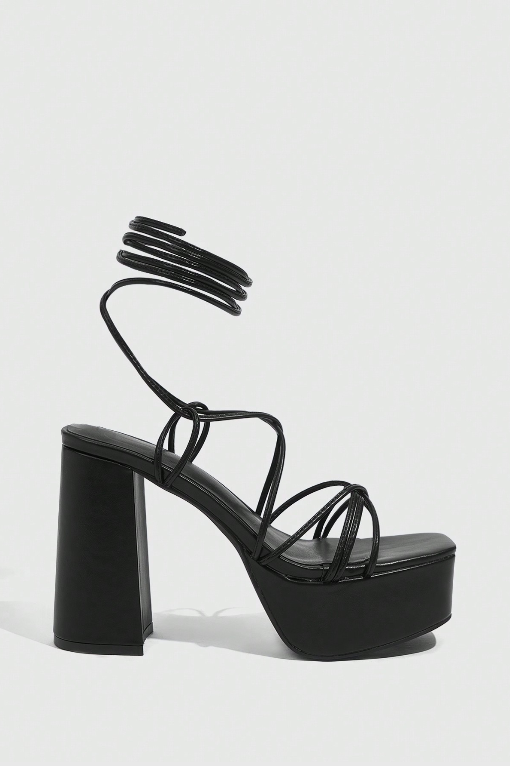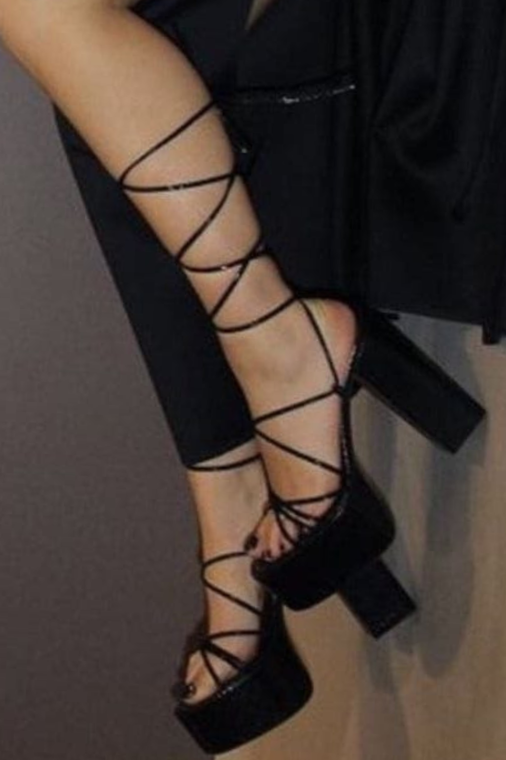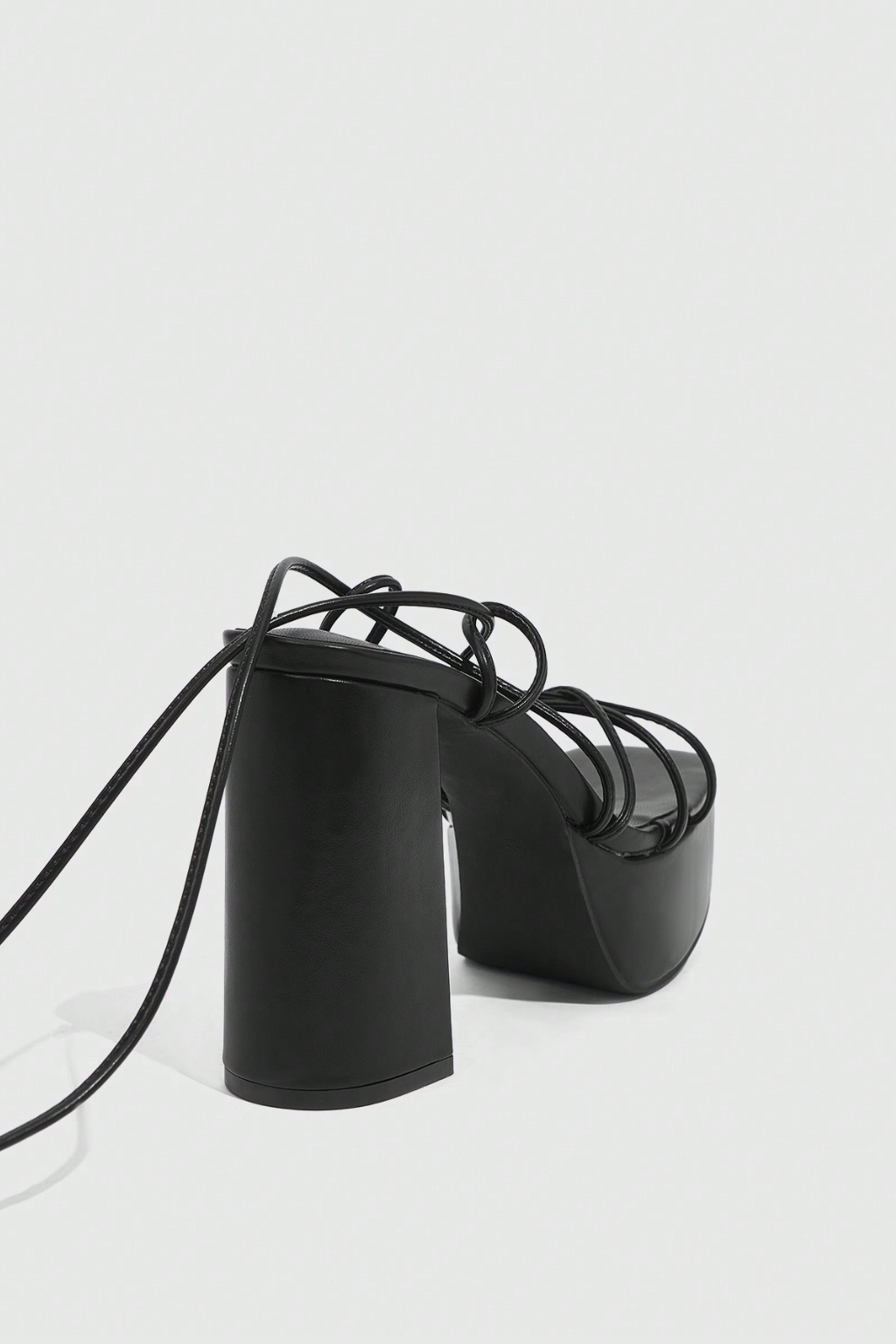DINSIM Black Lace-Up Chunky Platform Strappy SandalDINSIM Black Lace-Up Chunky Platform Strappy Sandal